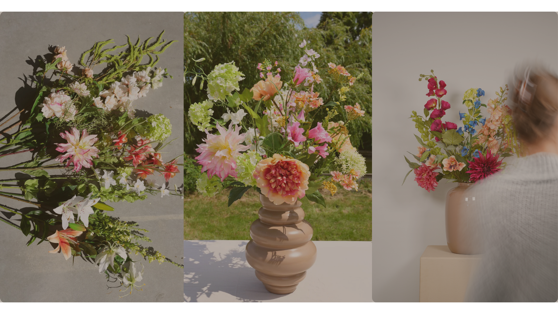 Wat begon als een gedeelde passie, groeide uit tot handgemaakte zijden boeketten. Met onze kijk op trends creëren we stijlvolle, tijdloze bloemen die niet verwelken. Met zorg samengesteld, met liefde gemaakt en altijd met oog voor sfeer.