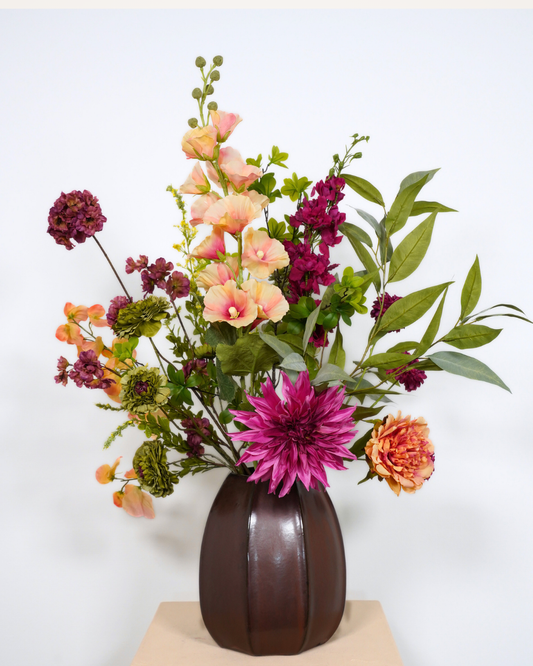 Onze standaard collectie bestaat uit mondgeblazen glazen vazen van hoogwaardige kwaliteit met een minimalistisch design. De perfecte vaas voor onze zijden bloemen boeketten!