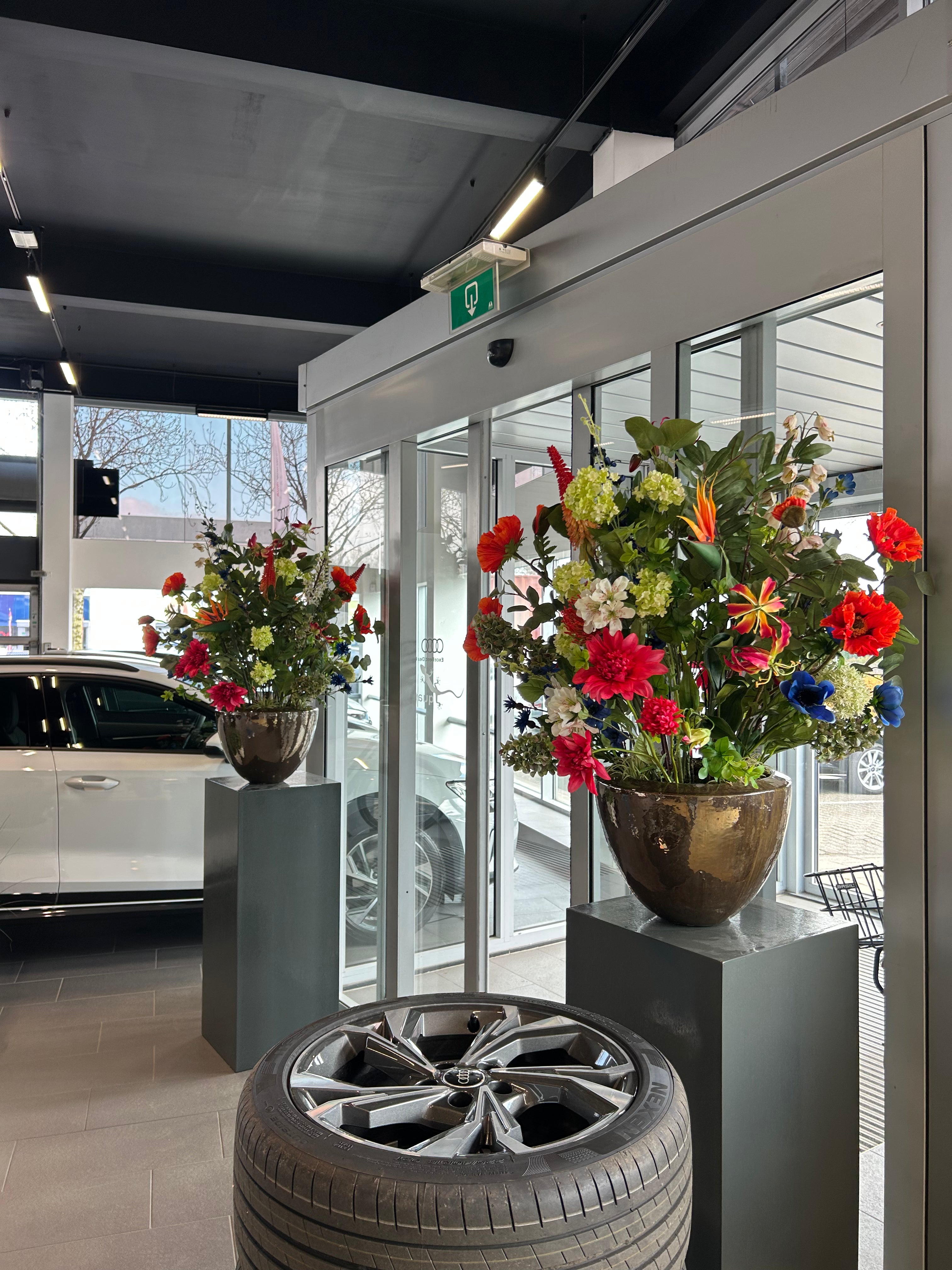 We komen op locatie voor een passende styling en zorgen dat alles tot in de puntjes klopt. Geen omkijken meer, geen water geven, geen verwelkte bloemen of onderhoud.