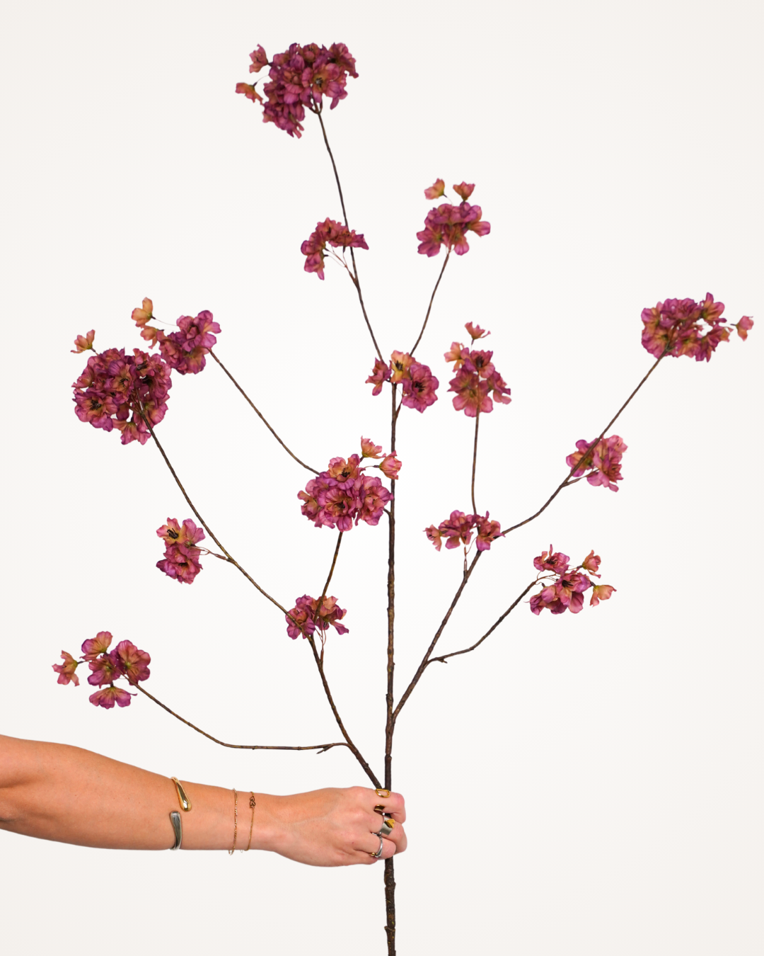 Breng een warme en chique uitstraling in je huis met deze prachtige bloesemtak in de populaire burgundy tint.