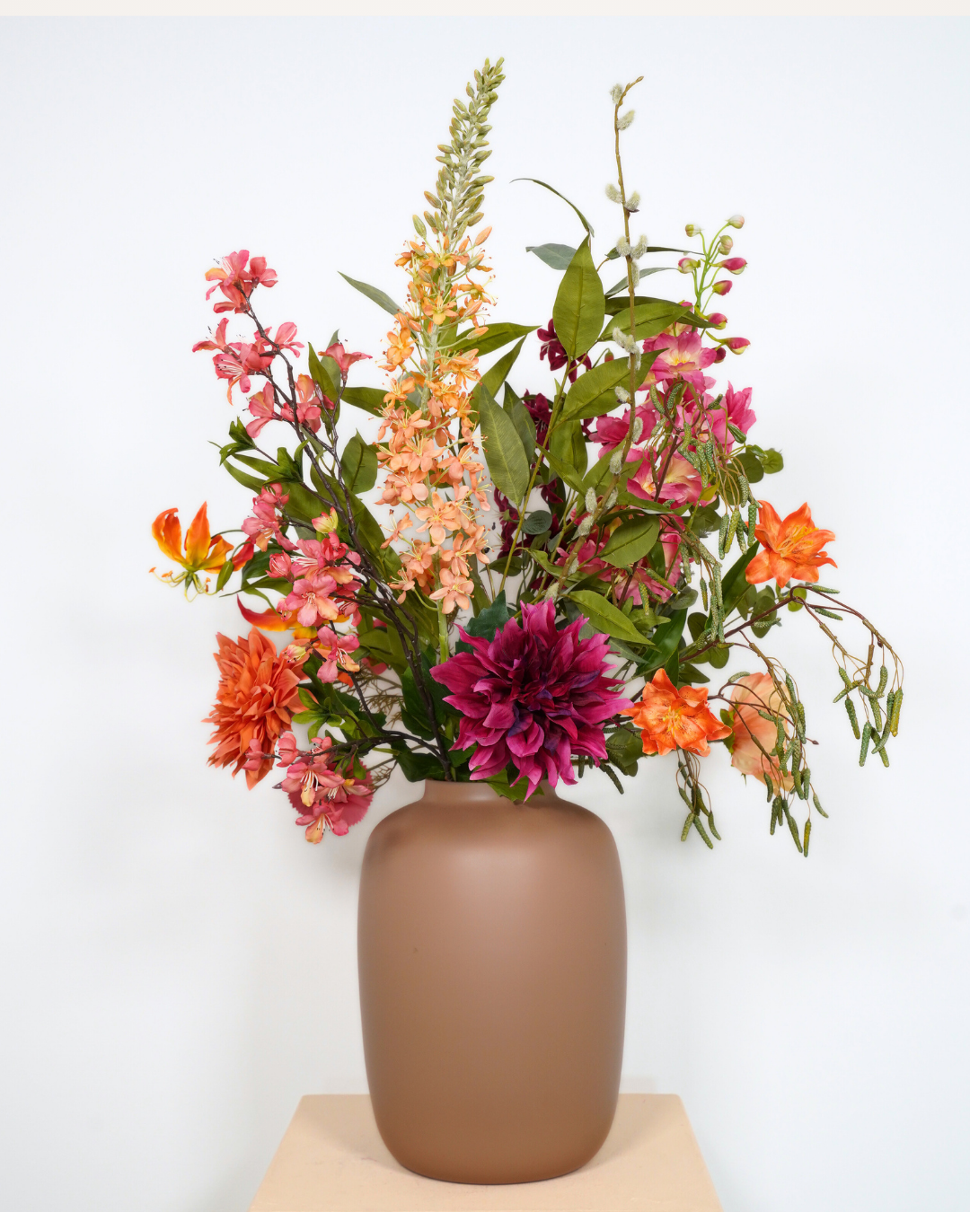 Boeket Dien, een speelse variant op onze bestseller Dina. Met meer springerige elementen en een verrassende kleurencombinatie is dit boeket uniek in zowel stijl als uitstraling.
