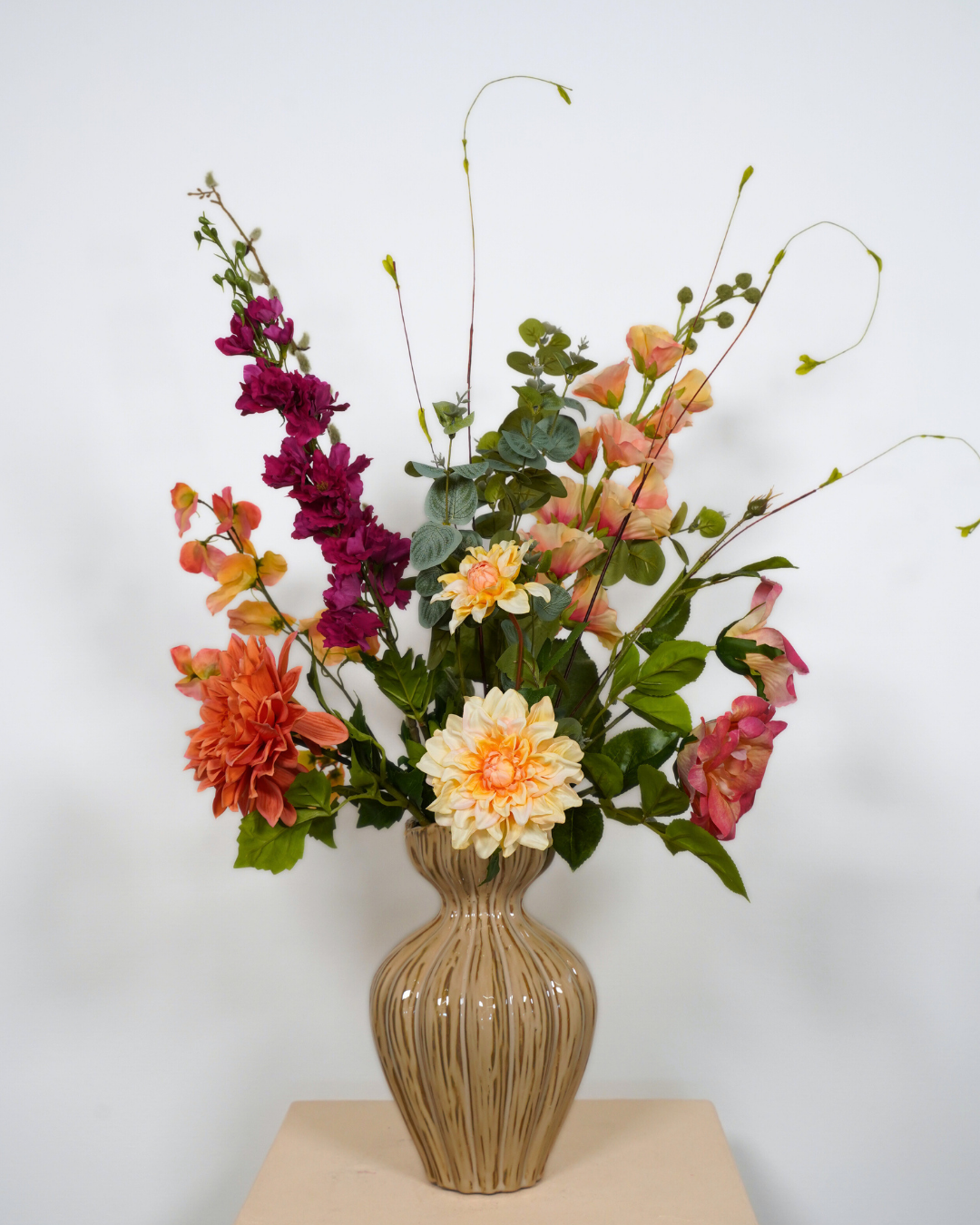 Een tijdloos boeket in een geliefde mix van natuurlijke roze en warme oranje tinten. Zacht, elegant en moeiteloos stijlvol — een boeket dat altijd past.